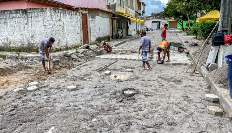 Já no bairro Sapoti, nas imediações da praça que leva o mesmo nome do bairro, estão sendo realizadas obras para calçamento da travessa dos Cajás.