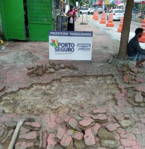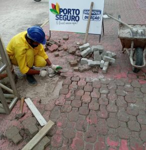 Calçamento, recuperação de calçadas e sistema de drenagem estão sendo feitos no centro e bairros de Porto Seguro