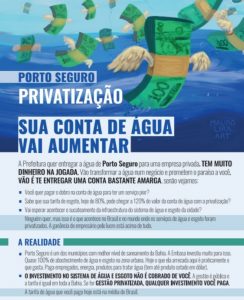 Todos à audiência pública de 11/12, às 10h, na Cãmara de vereadores de Porto Seguro. Não à privatização! Vamos fazer valer nossos direitos.