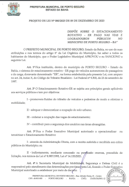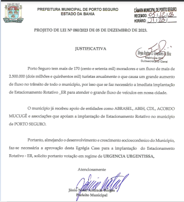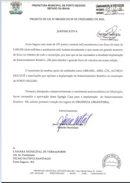 Na busca por soluções para o crescente desafio do trânsito em Porto Seguro, o prefeito Jânio Natal assina o Projeto de Lei Nº 080/2023, visando a implantação do Estacionamento Rotativo (ER) no município. Com mais de 170 mil moradores e 2,5 milhões de turistas anuais, a proposta surge como uma resposta ao aumento significativo no fluxo de veículos.