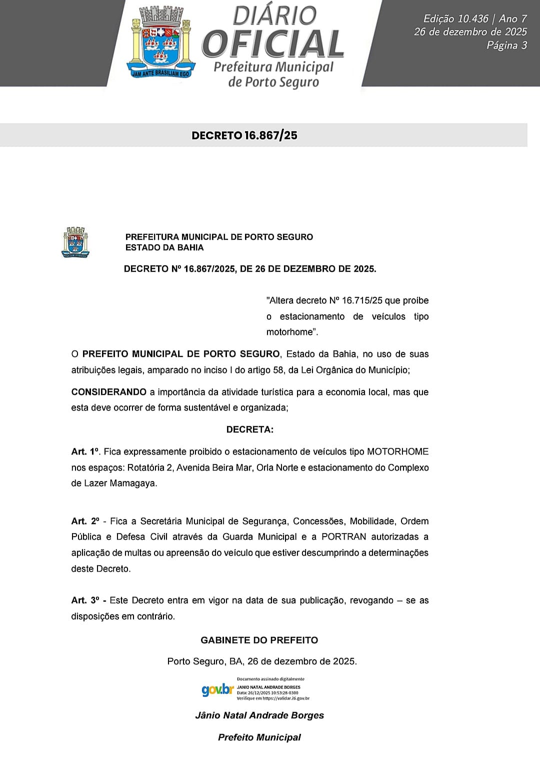A Prefeitura de Porto Seguro informou ainda que seguirá dialogando com a população, comerciantes e setores ligados ao turismo, buscando soluções que conciliem o desenvolvimento econômico com a preservação ambiental, cultural e histórica do município.