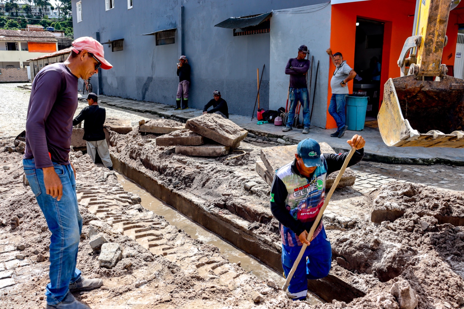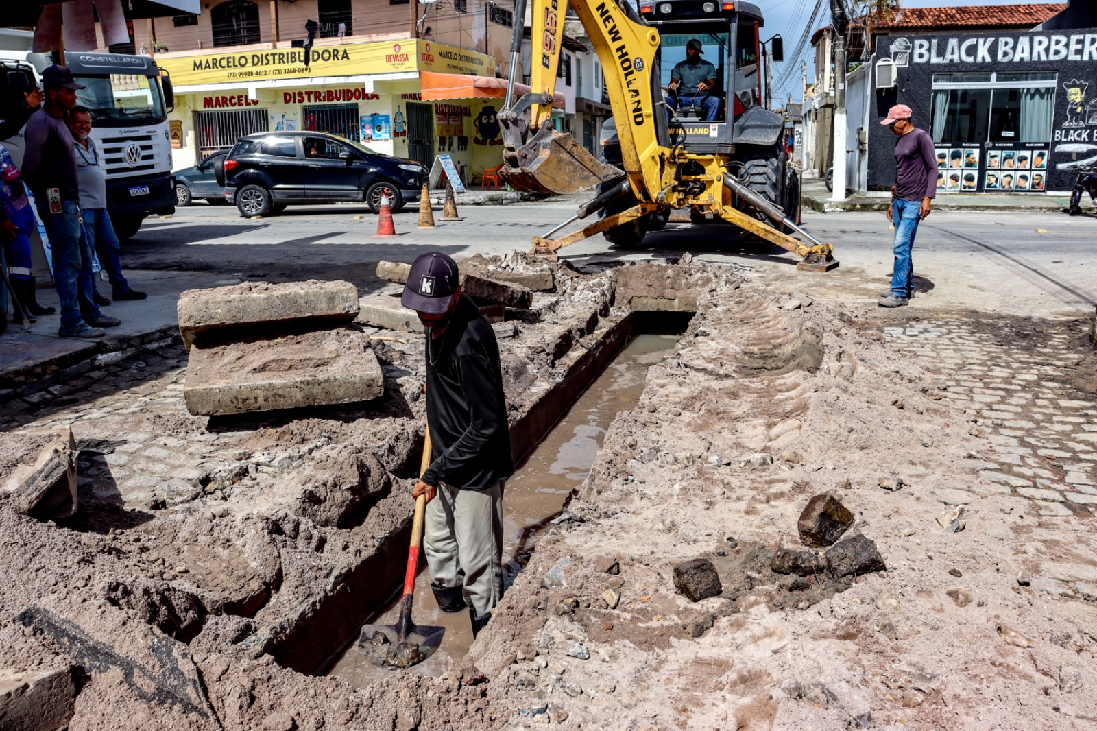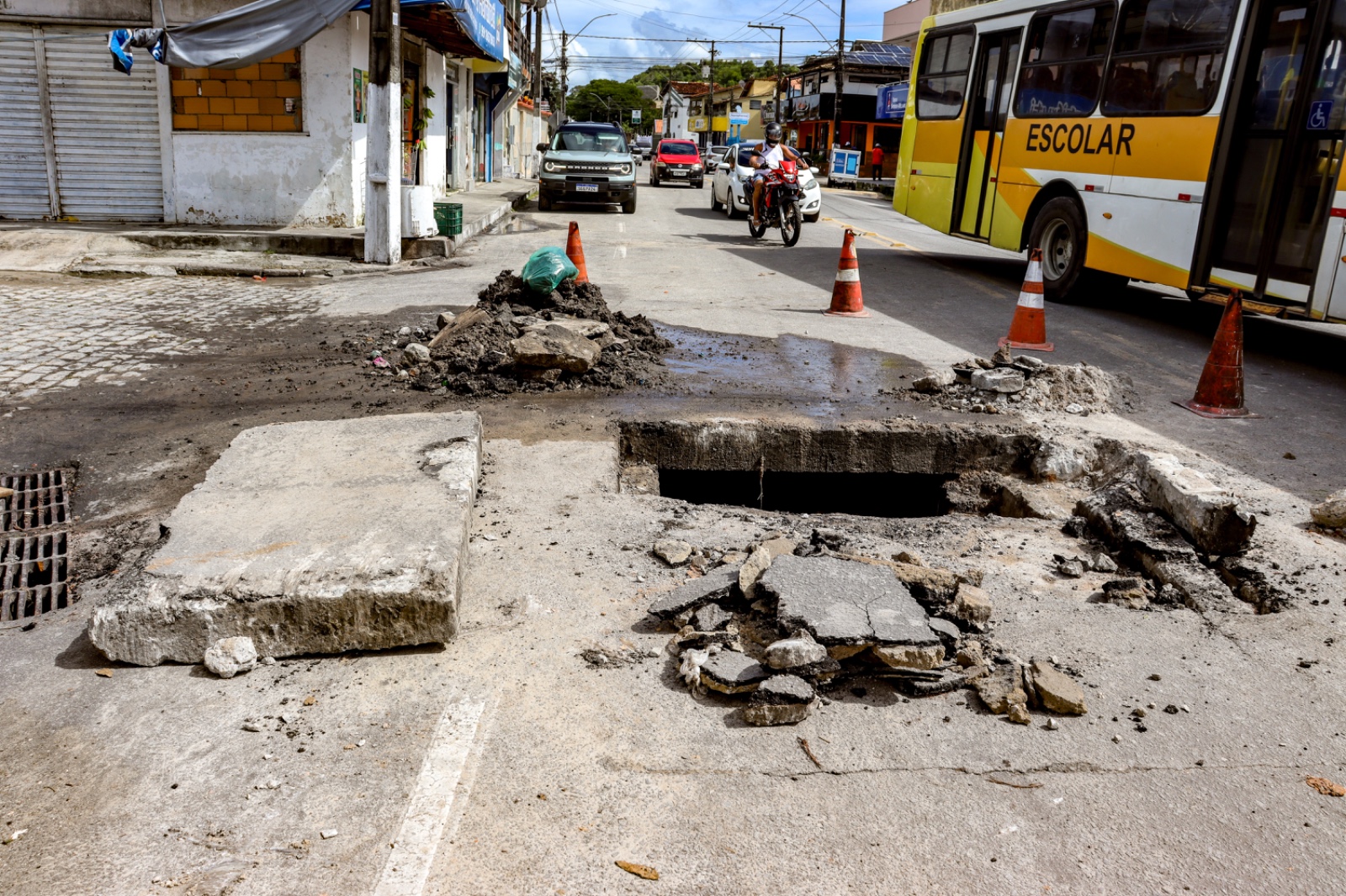 Para a realização do serviço, foi necessário quebrar o asfalto feito pela gestão anterior. “A galeria nunca foi limpa, estava cheia de areia, concreto e lixo. A antiga administração jogou asfalto por cima sem sequer fazer a limpeza”, explicou o secretário municipal Denisson Matos, informando que foram mais de 30 anos sem efetuar a limpeza.