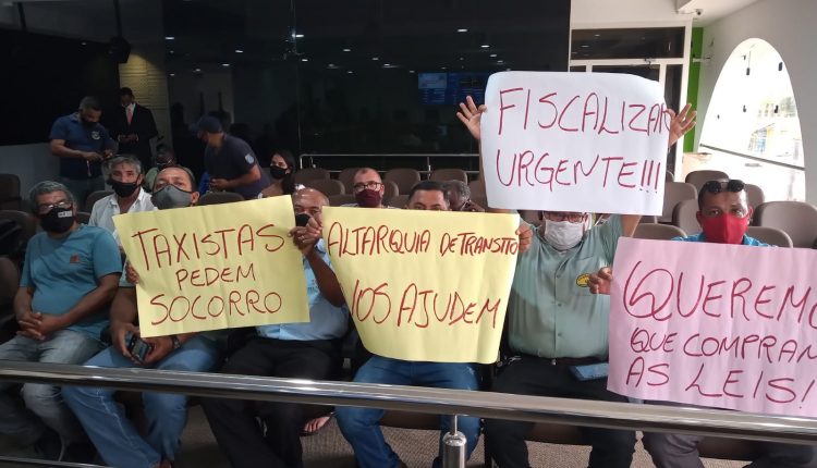Com cartazes em punho, eles cobravam fiscalização ostensiva ao transporte irregular, dos motoristas de lotação e dos aplicativos, que desviam suas funções, descaracterizando o formato dos quais se encaixam na legislação.