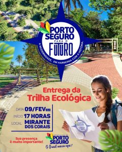 O distrito de Arraial d’Ajuda, em Porto Seguro recebe nesta quinta-feira, (09/02) mais um equipamento belíssimo e adequado à sofisticação e enquadrado à sua paisagem, uma trilha ecológica cujos detalhes teve a participação da comunidade, com discussões e definições, a partir de sugestões da comunidade.