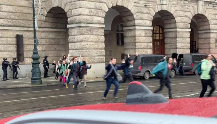 Após afirmar que respondia a um tiroteio em uma escola na Praça Jan Palach, a polícia informou que havia “eliminado” o atirador. Imagens mostram a correria de estudantes dentro da Universidade no momento do ataque.