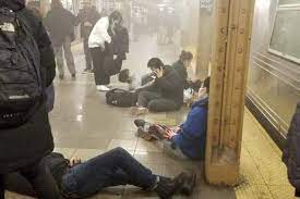 Os bombeiros foram chamados para a estação de metrô da 36th Street, no bairro de Sunset Park, no Brooklyn, por causa de uma condição de fumaça por volta das 8h30. Lá, várias pessoas foram encontradas baleadas, disse o FDNY.