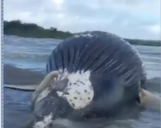 Uma equipe do Projeto Baleia Jubarte esteve no local, afirmou que o animal era adulto e que estava morto há alguns dias.