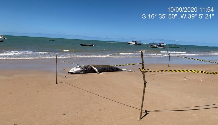 Nessa quinta-feira, 10/09, mais um filhote de baleia jubarte encalhou e foi encontrado morto na Praia dos Nativos, em Trancoso. Assim que recebeu o comunicado, a Secretaria de Meio Ambiente de Porto Seguro se dirigiu ao local, solicitando apoio da Secretaria de Serviços Públicos e do Instituto Baleia Jubarte, que estuda o cetáceo