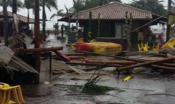 Ciclone arrasa a Praça do Relógio e danifica supermercado em Porto Seguro