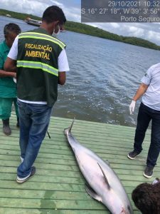 Um golfinho foi encontrado morto nesta sexta-feira (29/10), em Porto Seguro. O animal apareceu boiando no Rio Buranhém, perto do terminal das balsas.