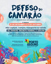 A Secretaria Municipal de Meio Ambiente de Porto Seguro informa que desde a quarta-feira (15/09), iniciou-se o 3º período do defeso do camarão. Esta é a temporada em que está proibida a pesca de arrasto com tração motorizada para a captura de espécies de camarão da área costeira e marinha do litoral da Bahia, de Camaçari até o limite sul do estado, até o dia 31 de outubro.