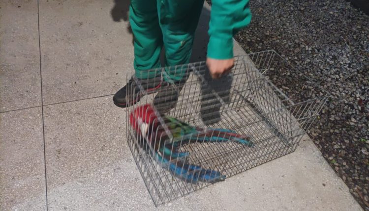 Policiais da CIPPA/PS resgatam Arara-Vermelha-Grande ferida em Porto Seguro.