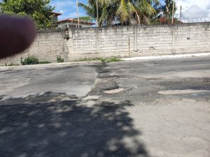 Sem podermos identificar que tipo de água que escorre ali, se “servida”, fluvial, ou até mesmo esgoto, a água provoca buracos constantes aos pés do quebra-molas e sucinta sucessivos transtornos à imensidade de veículos que por ali trafegam.