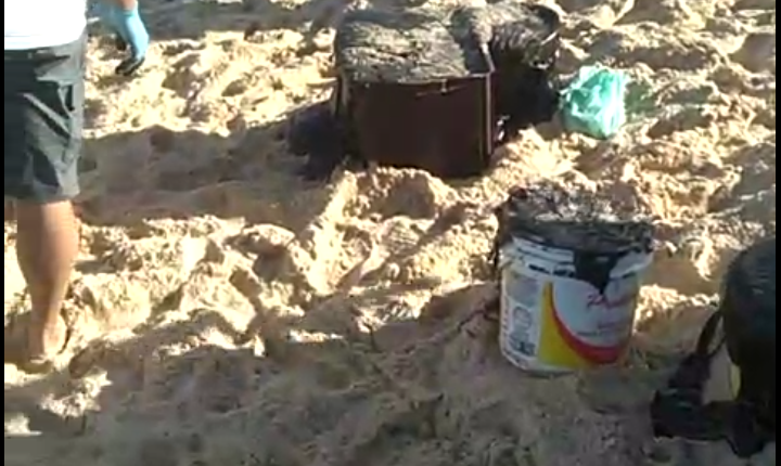 Desta forma, com muita garra e eficiência, a população e entidades civis reagiram à chegada da maldita mancha do óleo, nesta tarde de quinta-feira, 31/10, na praia do Mucugê em Arraia D’ajuda, distrito de Porto Seguro.
