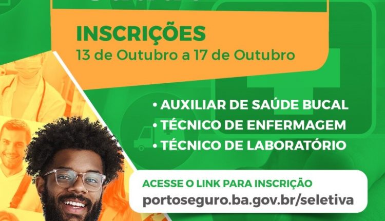 Para inscrição, acesse o link: portoseguro.ba.gov.br/seletiva
