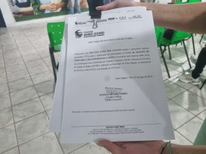 A chamada para a entrega dos certificados foi conduzida pela coordenadora Luar Grecov, que convidou os professores para participarem da entrega. Os alunos Jair e Raquel, visivelmente emocionados, usaram a palavra para agradecer à equipe envolvida no projeto e destacaram o impacto positivo da qualificação em suas vidas.