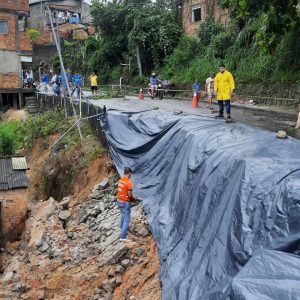 A via foi interditada para o fluxo de veículos e todo o corpo técnico da Prefeitura segue presente, além de monitorar outras áreas de risco.