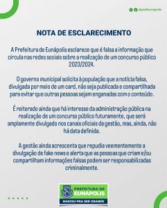 Card divulgado nas redes sociais promovendo um concurso público no município de Eunápolis foi, veementemente, negado pela gestão, nesta quarta-feira, (01/03).
