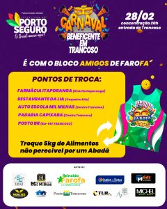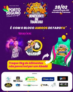 A festa está marcada para o dia 28 de fevereiro, com concentração às 20h na entrada de Trancoso. A animação fica por conta do cantor Gui de Paula e da banda Abuska, garantindo um repertório contagiante para ninguém ficar parado.