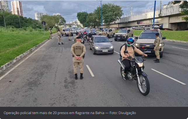 A Polícia Militar (PM) apreendeu 14 armas de fogo, realizou 22 prisões em flagrante e conduziu 53 pessoas às delegacias durante uma operação realizada na terça-feira (4), na Bahia. Além disso, 7 mandados de prisão foram cumpridos na ação. Os dados foram divulgados pela PM nesta quarta-feira (5/07).