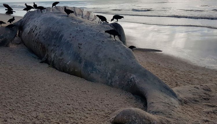 Baleia jubarte com mais de 12 metros é encontrada morta em Alcobaça/BA