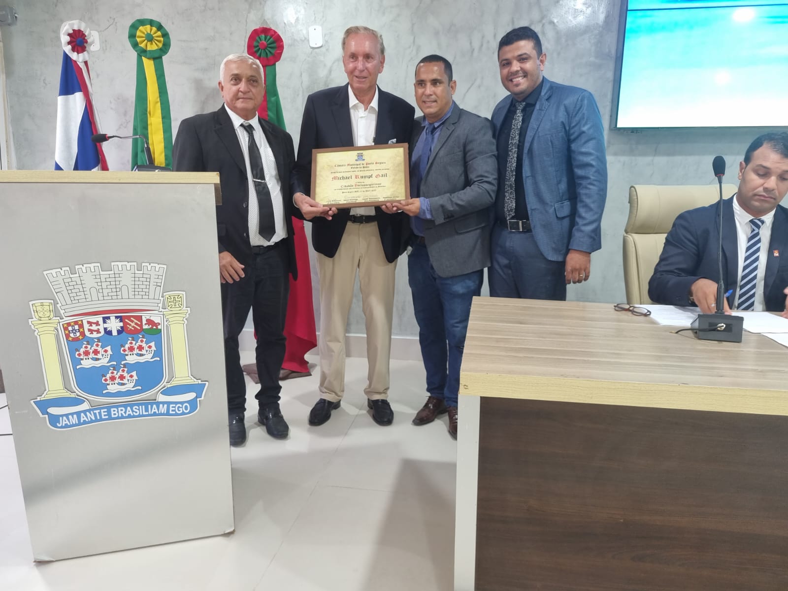 — “Tudo foi feito com muita convicção, satisfação e paixão por essa cidade. Espero continuar contribuindo para o seu desenvolvimento”, afirmou Michael, ao agradecer o reconhecimento da Câmara.