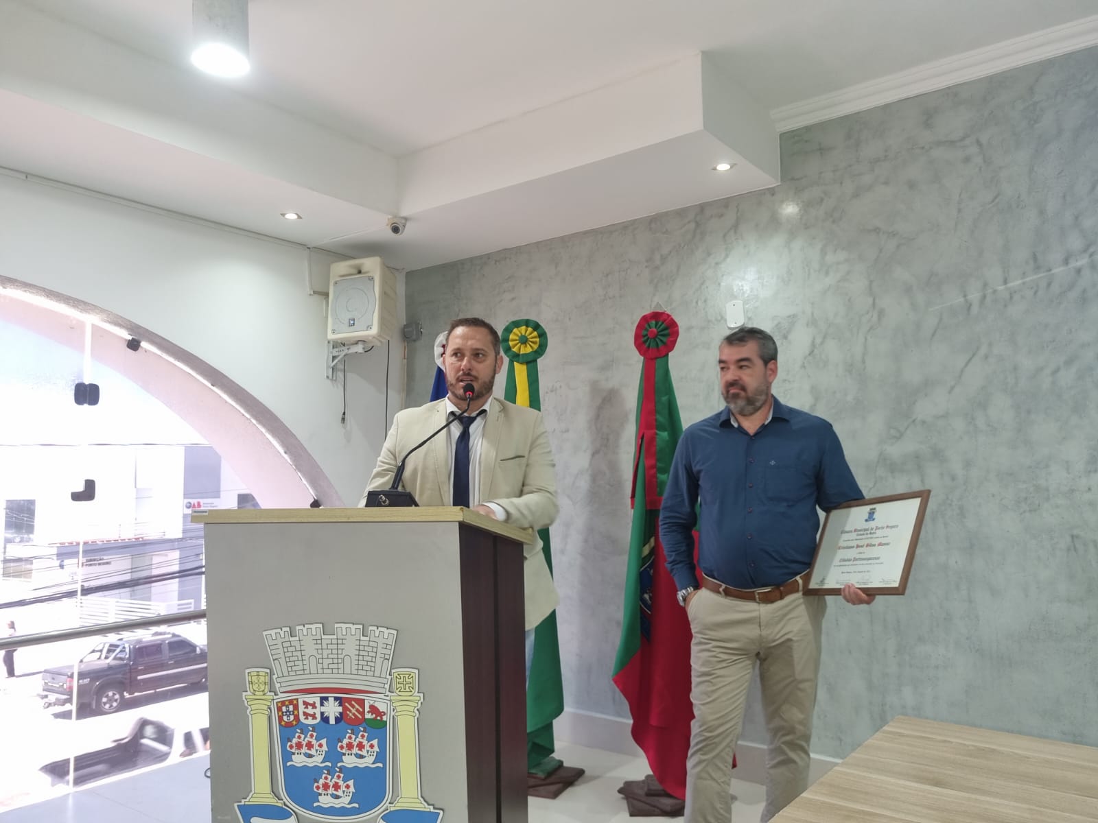 Na manhã desta quinta-feira (10/04), a Câmara de Vereadores de Porto Seguro realizou uma sessão solene marcada por emoção, reconhecimento e gratidão. Durante a cerimônia, o médico ortopedista Dr. Cristiano Manze e o empresário Michael Rumpf Gail foram agraciados com o título de Cidadão Honorário de Porto Seguro – a mais alta honraria concedida pelo município.