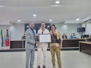 O presidente da Câmara, Dilmo Santiago (PL), anunciou a entrega do título de Cidadão Honorário ao prefeito da cidade de Belmonte, em Portugal, Antônio Pinto Dias Rocha, em cerimônia inédita realizada por videoconferência. Ele ressaltou a contribuição do homenageado para a consolidação de acordos culturais e educacionais com Porto Seguro. Dilmo também apresentou seu Projeto de Lei nº 047/2025 que reconhece o distrito de Arraial d’Ajuda como a Capital Mundial dos Casamentos à Beira-Mar, proposta elogiada pelos vereadores pela relevância para o fortalecimento do turismo na Orla Sul.