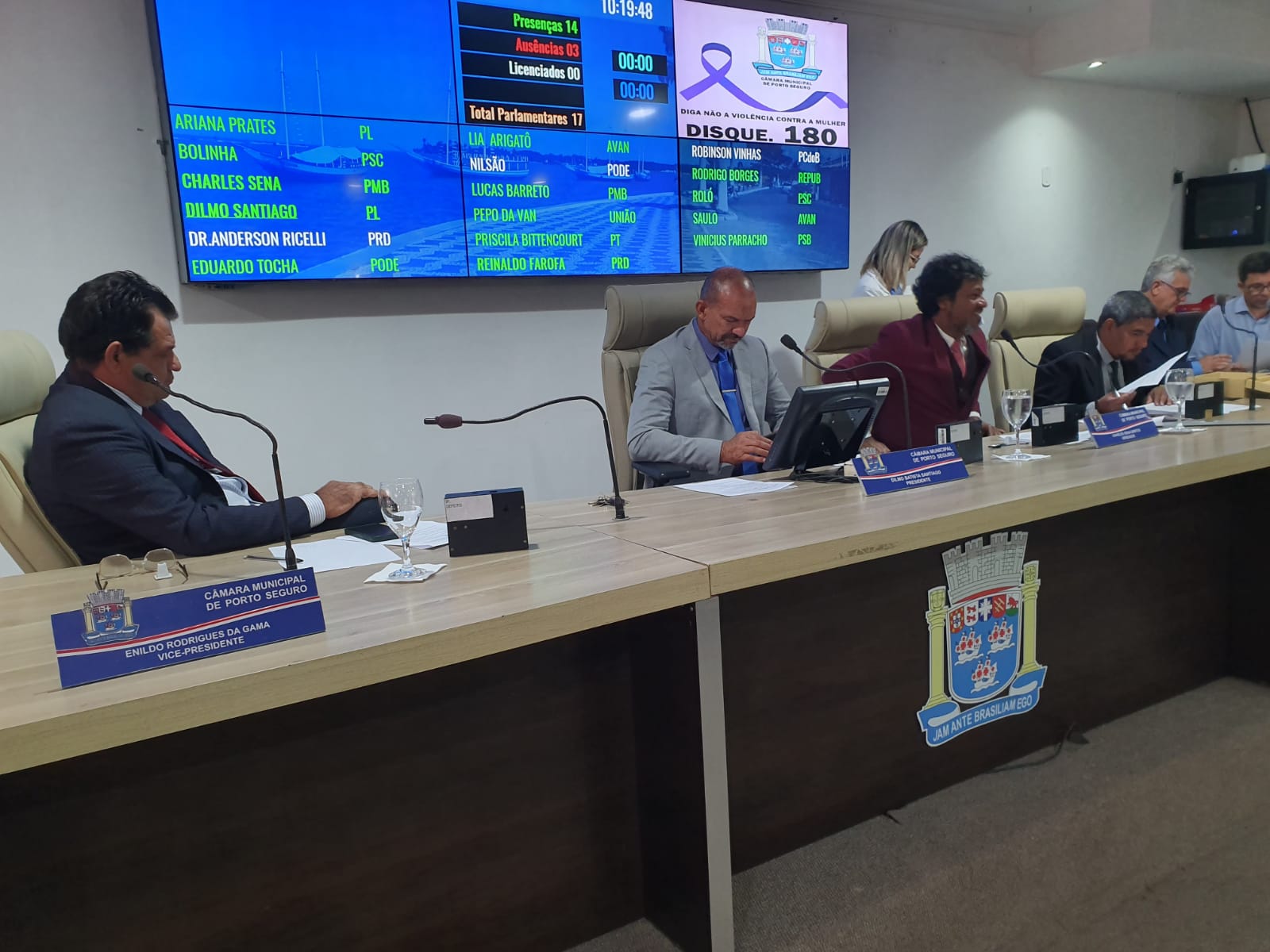 Não compareceram à sessão os vereadores Dr. Anderson, Nilsão e o líder do governo, Robson Vinhas.