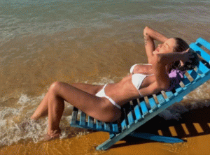 “Cheguei no paraíso”, escreveu em uma das fotos postadas, onde ela aparece tomando sol em uma cadeira de praia.