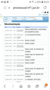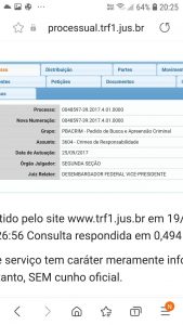 O site de acompanhamento processual do TRF 1 da Justiça federal em Brasília, acusa a movimentação do processo referente aos fraternos, Robério e Claudia oliveira, nesta quarta-feira, (19/05) uma movimentação de Baixa por Declínio de Competência e encaminhamento dos autos para Subseção Judiciária de Eunápolis-BA