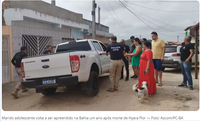O Tribunal de Justiça da Bahia (TJ-BA) condenou o adolescente suspeito de matar a esposa, Hyara Flor Santos Alves, de 14 anos, a cumprir medida socioeducativa de internação, por prazo indeterminado. A vítima foi morta com um tiro no queixo em Guaratinga, no extremo sul da Bahia, em julho de 2023.