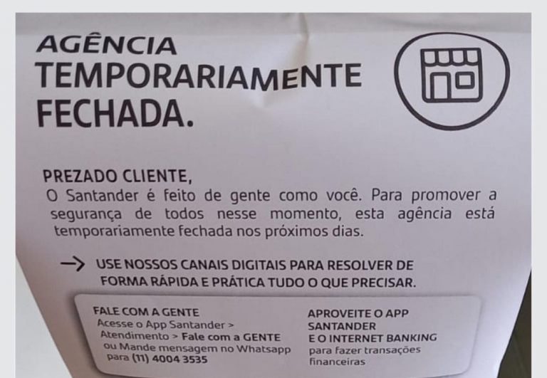 O banco Santander informou que a agência da cidade de Porto Seguro encontra-se fechada temporariamente devido a contaminação entre os trabalhadores e trabalhadoras da unidade.