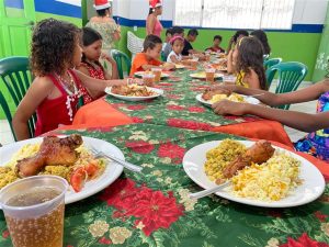 Já na quinta-feira (14/12), foi a vez das crianças e adolescentes do SCFV participarem de uma programação especial de Natal. A manhã começou com uma inspiradora fala da psicóloga do CRAS, Tânia Maria, seguida por uma roda de conversa reflexiva sobre o Natal, recheada de brincadeiras que encantaram a criançada. Destaque para a dinâmica da caixa de bombom e um animado bingo, que proporcionaram momentos de alegria e interação.