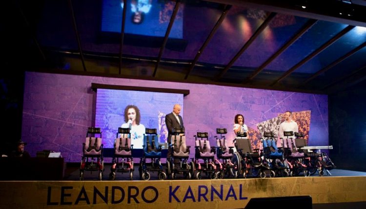 Crianças recebem cadeiras de rodas personalizadas em evento com Leandro Karnal