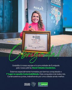 Eunápolis é 1º lugar no “Prêmio Band Cidades Excelentes” na categoria sustentabilidade e desenvolvimento socioeconômico