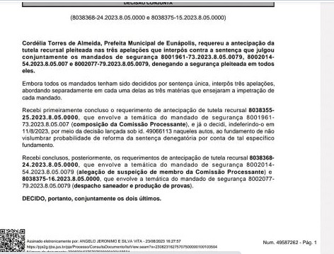 Veja abaixo a decisão da justiça: