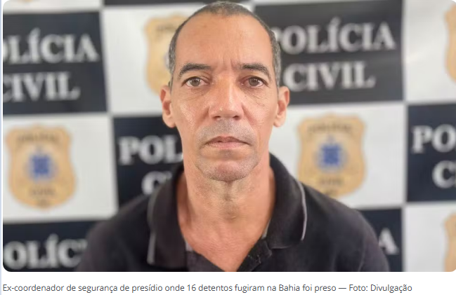 O ex-coordenador de segurança do Complexo Penal de Eunápolis, unidade localizada no extremo sul da Bahia onde 16 detentos fugiram em dezembro do ano passado, foi preso nesta sexta-feira (24/01), por suspeita de envolvimento com o caso.