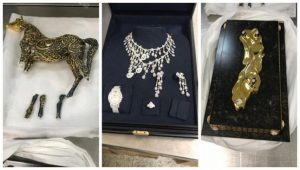 O Estadão apurou que o conjunto formado por colar, um par de brincos, anel e relógio da marca Chopard seriam oferecidos em leilão de itens apreendidos pela Receita por sonegação de imposto após os itens ficarem mais de um ano em poder da alfândega. Segundo o jornal, a decisão foi suspensa porque as joias passaram a ser enquadradas como prova de crime.