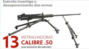 O sumiço das 13 metralhadoras calibre .50, que podem derrubar até aeronaves, e das oito metralhadoras calibre 7,62 está sendo investigado exclusivamente pelo Exército. O Comando Militar do Sudeste (CMSE), na capital de São Paulo, e o Departamento de Ciência e Tecnologia (DCT), em Brasília, enviaram comitivas para apurar o extravio do arsenal.