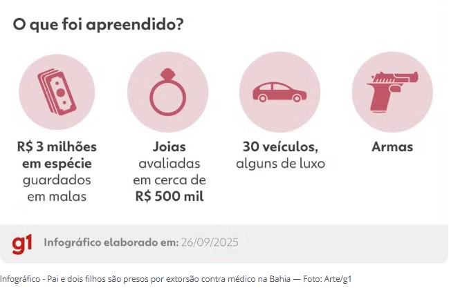 A família suspeita de extorquir dinheiro de um médico cobrou R$ 3 milhões em juros após emprestar R$ 500 mil à vítima, na cidade de Vitória da Conquista, no sudoeste da Bahia. A informação foi divulgada ao g1 pelo delegado Odilson Pereira, responsável pelas investigações.