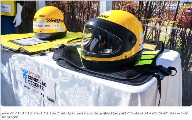Governo da Bahia oferece mais de 2 mil vagas para curso de qualificação para mototaxistas e motofrentistas