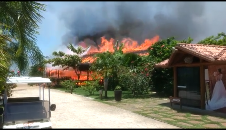 Ainda sem identificação das causas que provocaram o incêndio, o Hotel Toko Village, no bairro Mutá, teve a recepção e o restaurante totalmente consumidos pelo fogo nesta manhã de sábado, 09/02.