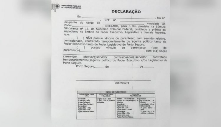 Ministério Público solicita informações de vínculo de parentesco de servidores municipais nos poderes legislativo e executivo em Porto Seguro