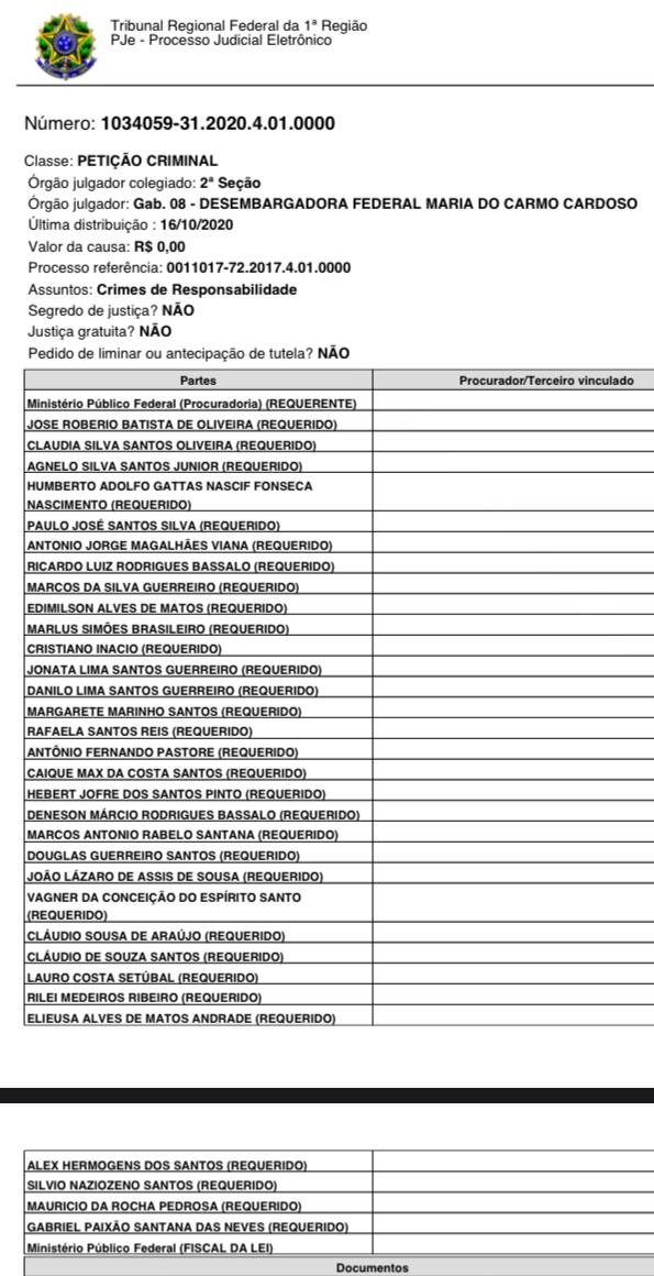 O Ministério Público Federal (MPF), através do TRF1 (Tribunal Regional Federal da 1ª Região), com sede em Brasília, em decisão do desembargador Lauro Pinto Cardoso Neto, datada de 16 de outubro de 2020, e somente agora tornada pública, ofereceu denúncia para 32 pessoas envolvidas na fatídica e conhecida “operação fraternos”.