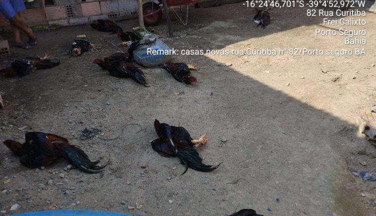 Na tarde desta quinta-feira, 22 de agosto, a Companhia Independente de Polícia de Proteção Ambiental Porto Seguro (CIPPA/PS) realizou uma operação de fiscalização ambiental que resultou na desarticulação de um criatório ilegal de galos de briga, localizado no Bairro Casas Novas, em Porto Seguro. A ação ocorreu após denúncias anônimas que levaram a guarnição ao local. Ao chegarem ao endereço indicado, os policiais militares foram recebidos pelo proprietário do imóvel, que confirmou a atividade ilegal e permitiu a inspeção das instalações. Durante a vistoria, foram encontrados 13 galos de briga que apresentavam sinais evidentes de maus-tratos, incluindo mutilação de cristas, arandelas e esporas, além de pequenas escoriações no dorso e peito. No local, também foram encontradas seringas e medicamentos utilizados para aplicação nas aves.