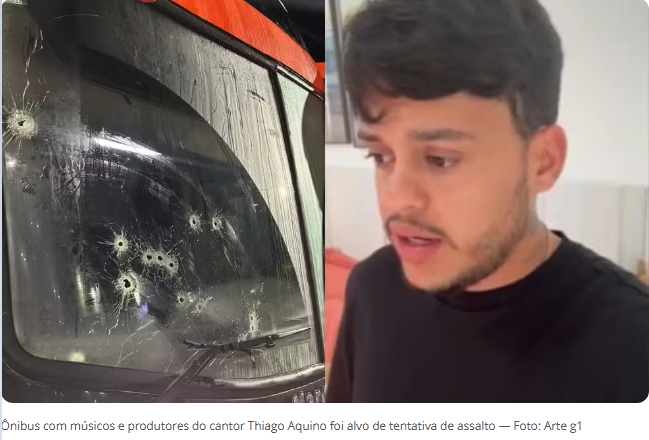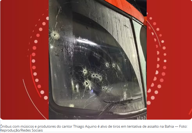 Ônibus com músicos e produtores do cantor Thiago Aquino é alvo de tiros em tentativa de assalto na BA