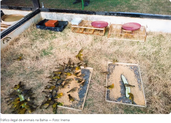 Uma operação contra o tráfico de animais resgatou 400 pássaros que estavam sendo transportados ilegalmente em um carro na BR-349, na região da cidade de Santa Maria da Vitória, no oeste da Bahia. Os animais estavam confinados em 19 gaiolas e muitas aves foram encontradas mortas, segundo o Instituto do Meio Ambiente e Recursos Hídricos (Inema).