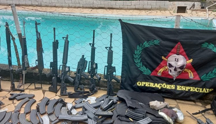 “Eles tinham uniformes e vestimentas próprias que seriam utilizadas por esses infratores, coletes balísticos, joelheiras, coturnos, até mesmo algumas roupas camufladas. Os carregadores das armas, todos já municiados e em condições de resposta, foram apreendidos desta maneira. Armamentos de todos os calibres, fuzis, escopetas calibres 12, miguelitos que são usados para poder furar o pneu de viaturas, vários galões de combustível, explosivos e tem material chegando a todo tempo”, informou a porta-voz da Polícia Militar, capitão Layla Brunela.