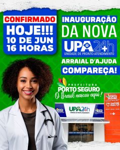 Nesta segunda-feira, 10 de junho, a população do distrito de Arraial d’Ajuda, em Porto Seguro, ganha um importante reforço na rede pública de saúde com a inauguração da nova Unidade de Pronto Atendimento (UPA).